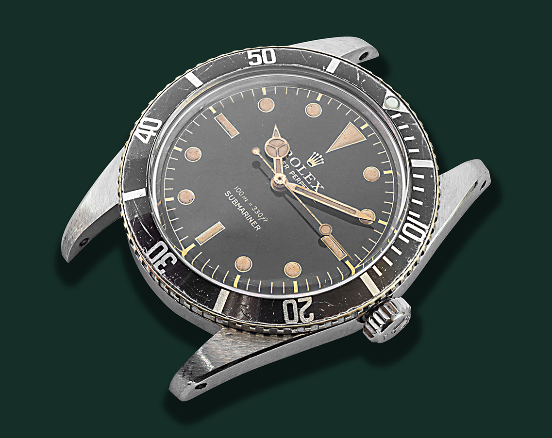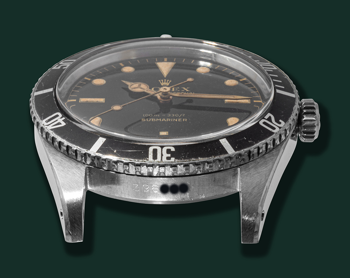 Rolex Submariner “James Bond “, referenza 6536-1 del 1958,seriale 398 XXX, completamente originale in tutte le sue parti,mai lucidato,ghiera coeva, cinturino in pelle, quadrante e movimento in eccellenti condizioni.